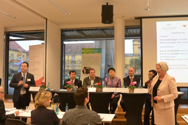 校長對話環節由奧斯納布呂克應用科學大學副校長薩賓娜·艾格斯教授和合肥學院黨委書記蔡敬民教授共同主持。施特拉爾松德應用科技大學前校長法爾克·霍恩教授,安哈爾特應用科學大學校長約爾克·巴格丹教授,常熟理工學院校長江作軍教授,昆明學院校長黎素梅教授,佛山科學技術學院黨委書記曾崢教授參加了對話。參加對話的校長們首先對各自高校進行了簡單介紹,然后就創新創業教育和高校對創業支持展開了熱烈的討論和經驗交流。