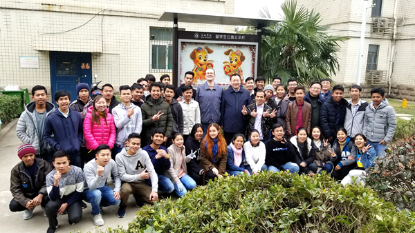 蔡敬民實地察看了留學生和外教宿舍,與留校外籍師生親切交談,仔細詢問他們的學習和生活情況,并勉勵他們互相關心、互相幫助,把學校當成自己的家,愉快地度過春節。在和諧、融洽的氛圍中,留校外國專家和國際學生們表示,雖然在異國他鄉,不能回國和家人團聚,但很享受在學校過新年的感覺,非常感謝學校領導帶來的溫暖祝福和親切慰問。蔡敬民叮囑相關部門負責同志一定要切實安排好留校外國專家和國際學生的生活,強化校園安全管理,確保大家過一個歡樂、安定、祥和的春節。