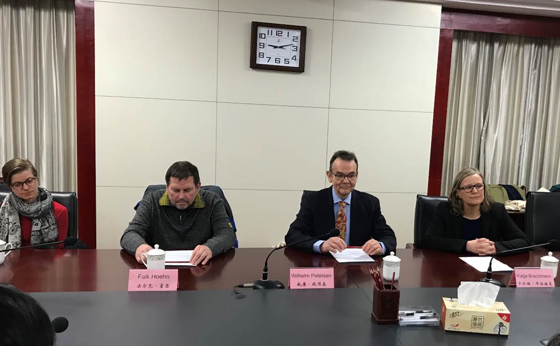 王其東對(duì)威廉·彼得森一行表示熱烈的歡迎,他指出國(guó)際合作交流辦學(xué)對(duì)大學(xué)的發(fā)展十分重要,合肥學(xué)院的中德合作是學(xué)校發(fā)展的重要方向,在三十三年的不間斷合作中,取得的成績(jī)離不開(kāi)德國(guó)友好高校的支持和幫助。合肥學(xué)院自2013年與施特拉爾松德應(yīng)用科學(xué)大學(xué)簽訂友好合作協(xié)議以來(lái),在師生互訪、合作辦學(xué)方面開(kāi)展了一系列的工作,尤其是我校與施特拉爾松德應(yīng)用科學(xué)大學(xué)共同建設(shè)的施特拉爾松德孔子學(xué)院,開(kāi)展了一系列特色活動(dòng),多次組織經(jīng)貿(mào)、文化高層訪問(wèn),得到兩國(guó)領(lǐng)導(dǎo)人的高度重視,已成為中德教育文化合作的標(biāo)桿。國(guó)家現(xiàn)在合肥學(xué)院建設(shè)“中德教育合作示范基地與基金”,這也是中德政府合作的重點(diǎn)項(xiàng)目,代表團(tuán)的此次訪問(wèn)能進(jìn)一步加強(qiáng)兩校之間的合作,兩校的合作也將依托基地的建設(shè),發(fā)揮更大的作用。