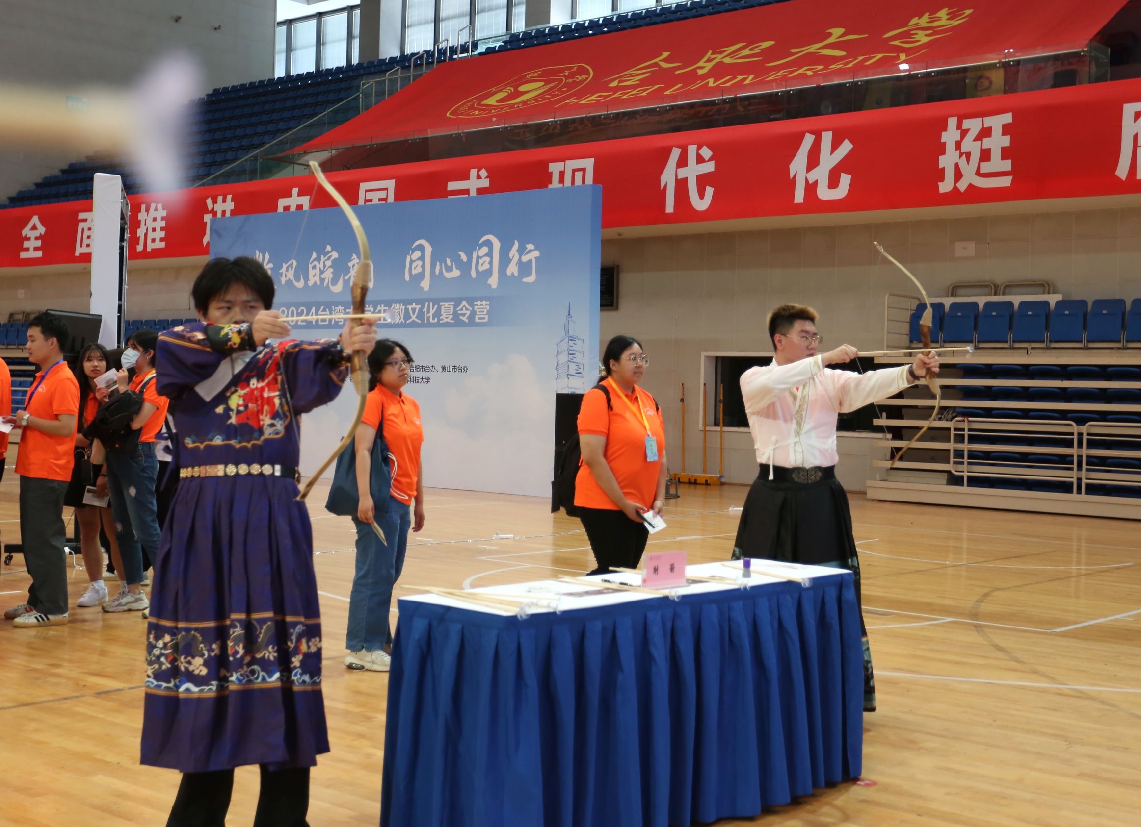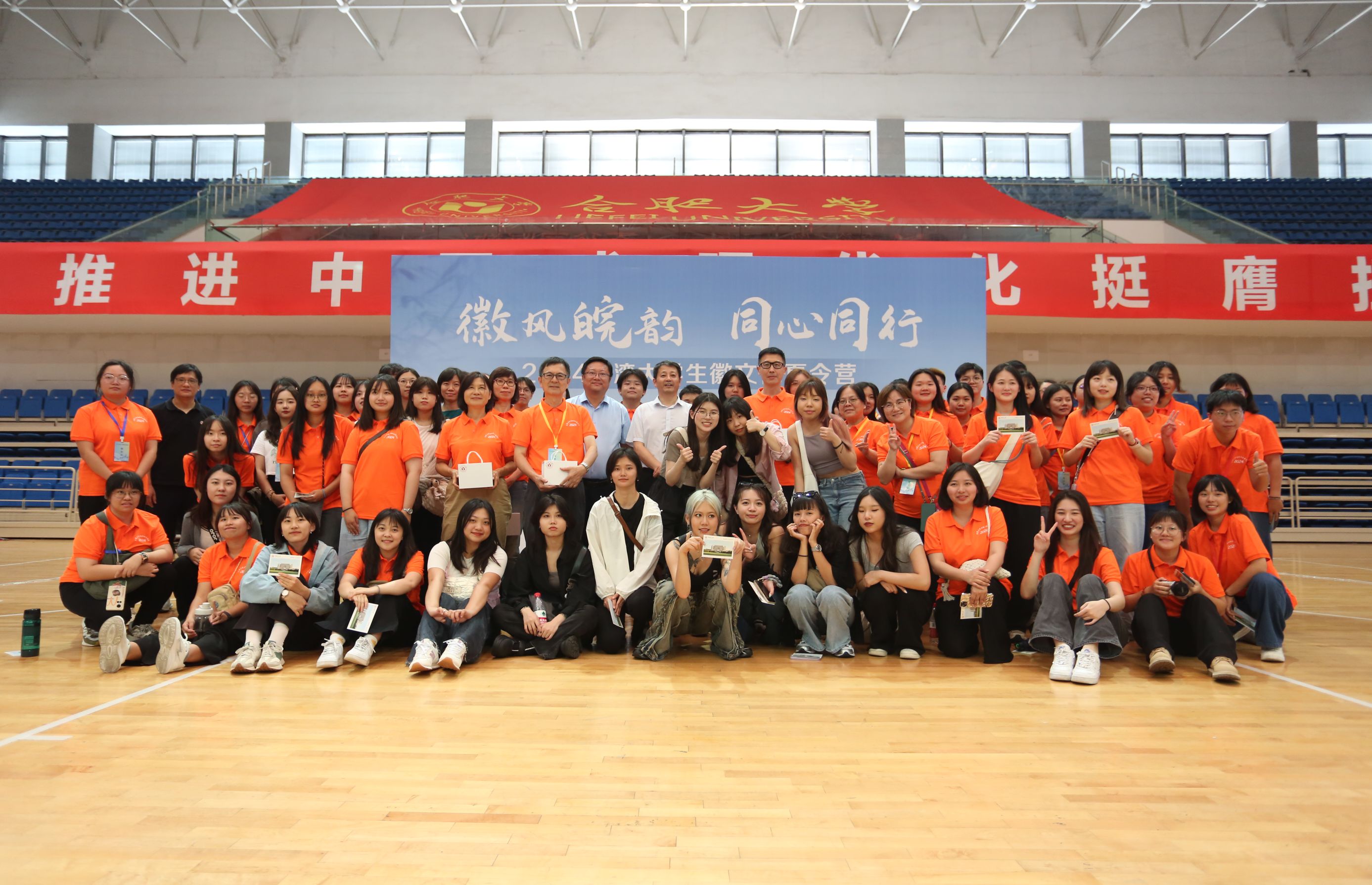 7月5日,為促進海峽兩岸青年學生交流,我校在體育館舉辦2024皖臺大學生徽文化夏令營傳統文化體驗營活動。黨委委員、副校長白義香出席活動并致辭,皖臺交流協會領導、黨委宣傳部部長賈峰、港澳臺辦公室主任張慧,以及銘傳大學、云林科技大學、東海大學、東華大學、安徽農業大學、合肥師范學院、我校師生參加活動。