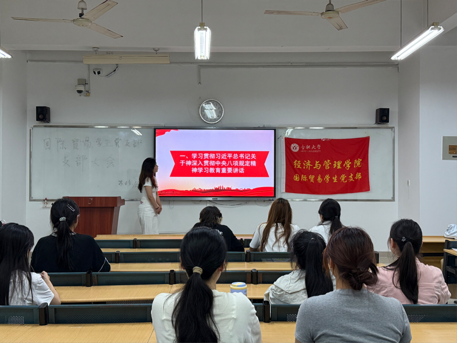 5月16日,經(jīng)濟與管理學(xué)院國際貿(mào)易學(xué)生黨支部順利召開黨員大會。此次黨員大會重點學(xué)習(xí)中央八項規(guī)定及其實施細則精神,并通過反面典型案例教育引導(dǎo)全體黨員堅守廉潔底線,將紀(jì)律要求融入日常學(xué)習(xí)和生活。