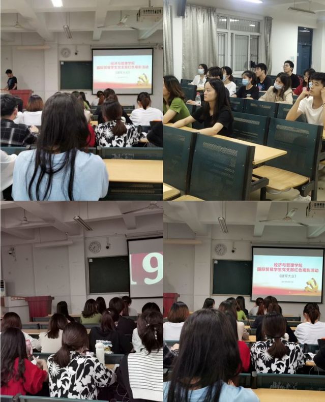 為慶祝中國共產黨建黨100周年,深入學習宣傳貫徹黨的光輝歷史和偉大精神,繼學習井岡山精神后, 經濟與管理學院國際貿易學生黨支部于527晚九十節課,在我校一區博學樓B307教室舉辦學生黨員黨史學習教育系列活動二·紅色觀影·建軍大業,重溫中國共產黨帶領人民謀幸福、為中華民族謀復興的艱辛過程。