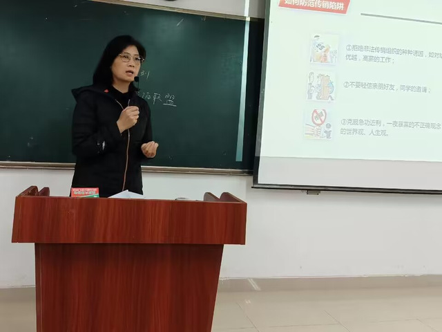 此次講座主題為“遠(yuǎn)離傳銷,凈化校園”,尚老師從“傳銷活動(dòng)的違法本質(zhì)”“直銷與傳銷的區(qū)別”“傳銷慣用手段及嚴(yán)重危害”“防范傳銷的方法”四個(gè)方面進(jìn)行綜合講解,并以生動(dòng)的案例深刻揭露傳銷慣用手段和社會(huì)危害。尚老師指出,從微觀角度而言,傳銷和變相傳銷對(duì)學(xué)生身心發(fā)展和校園和諧氛圍造成巨大破壞;從宏觀角度來看,其更是嚴(yán)重?cái)_亂社會(huì)經(jīng)濟(jì)秩序與和平穩(wěn)定。通過宣講國(guó)家關(guān)于防范和打擊傳銷的法律法規(guī),尚老師引導(dǎo)同學(xué)們樹立“拒絕傳銷,從我做起”的正確觀念,正確辨別、防范、舉報(bào)傳銷活動(dòng),并再三提醒學(xué)生要謹(jǐn)慎對(duì)待、加強(qiáng)防范,避免受到身心傷害和財(cái)產(chǎn)損失。同時(shí),尚老師鼓勵(lì)學(xué)生積極參與營(yíng)造打擊傳銷的強(qiáng)大聲勢(shì),宣傳全社會(huì)共同抵制、打擊傳銷的價(jià)值導(dǎo)向。最后,尚老師寄語同學(xué)們堅(jiān)持本心,做好本職工作,自覺遠(yuǎn)離傳銷陷阱,不為蠅頭小利而迷失自我。