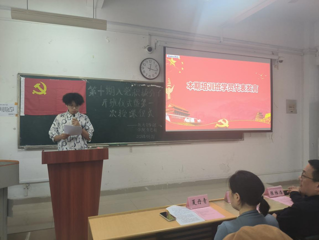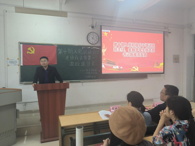 開班典禮上,第十期入黨積極分子學生代表23級財務管理三班李琦同學,分享了自己對中國共產黨的深刻認識并承諾在黨課學習中嚴于律己、努力學習。隨后,支部書記陳維浩對本期培訓班學員提出紀律要求,鼓勵學員認真學習,領會黨課知識內涵,并在日常學習、生活等方面爭當先鋒模范。最后,夏丹青副書記作動員講話,她希望同學們珍惜本次黨課學習機會,端正入黨動機,樹立為共產主義事業奮斗終生的理想信念。