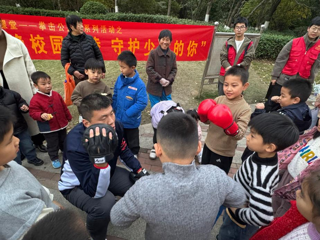 11月29日下午,為提高孩子們對“校園霸凌”的認知,培養孩子們的自我保護意識,經管學院學生志愿者攜手社區志愿者在綠地濱湖國際花都小區里開展了一次“拒絕校園霸凌,守護少年的你”拳擊課堂。
