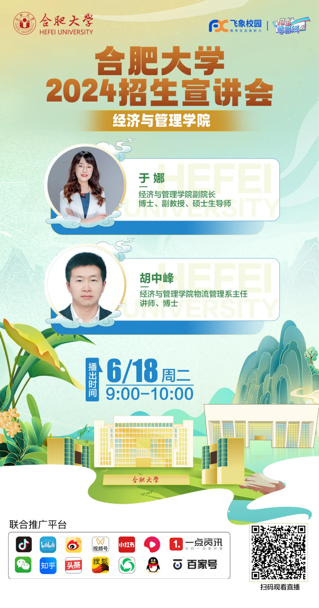 2024年招生宣講系列直播 精彩來(lái)襲 6月17日-6月18日 各學(xué)院院長(zhǎng)、教授走進(jìn)直播間 全方位解讀 專業(yè)特色、學(xué)科優(yōu)勢(shì) 人才培養(yǎng)、就業(yè)前景 …… 感受合大辦學(xué)力量 探索多元學(xué)科魅力 零距離回答考生問(wèn)題 精準(zhǔn)助力志愿填報(bào)