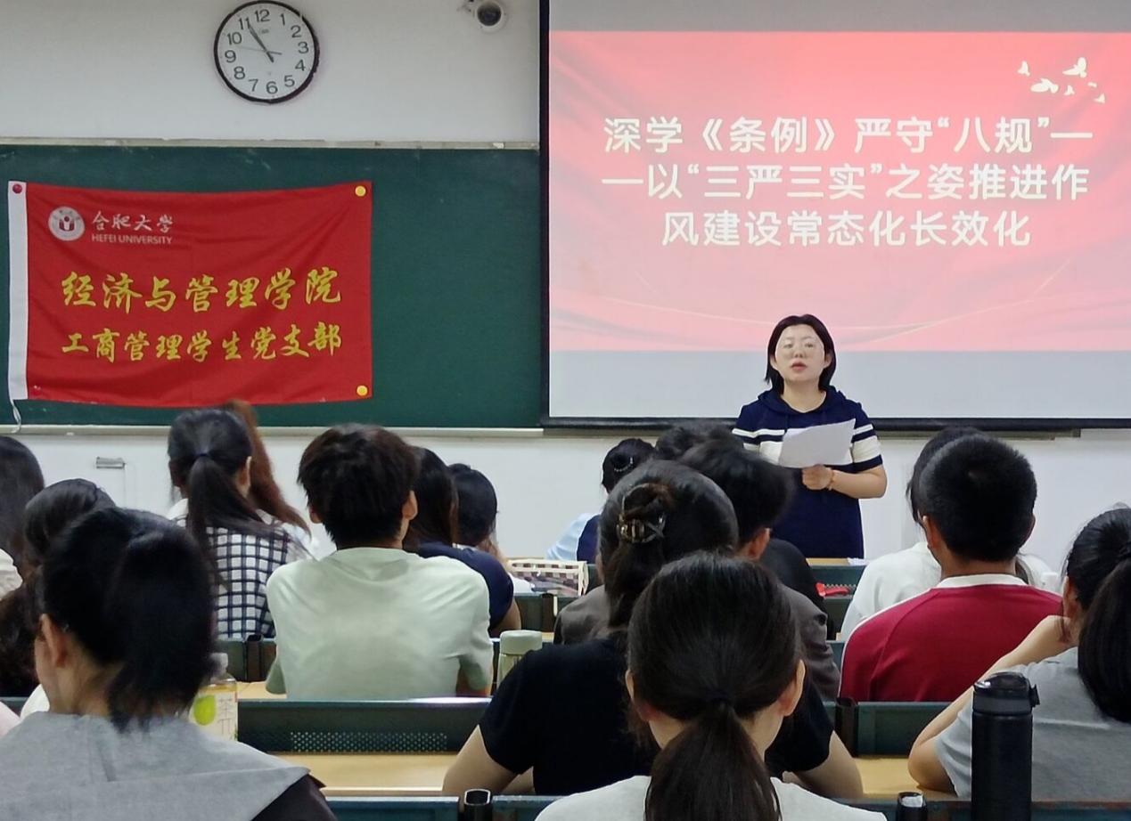 6月26日,經(jīng)濟與管理學院工商管理學生黨支部在一期4棟101教室開展深學《條例》嚴守“八規(guī)”----以“三嚴三實”之姿推進作風建設常態(tài)化長效化主題黨課,由經(jīng)濟與管理學院工商管理學生黨支部書記姚璇老師主講,支部全體黨員共同參加。