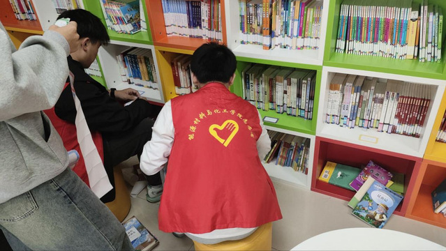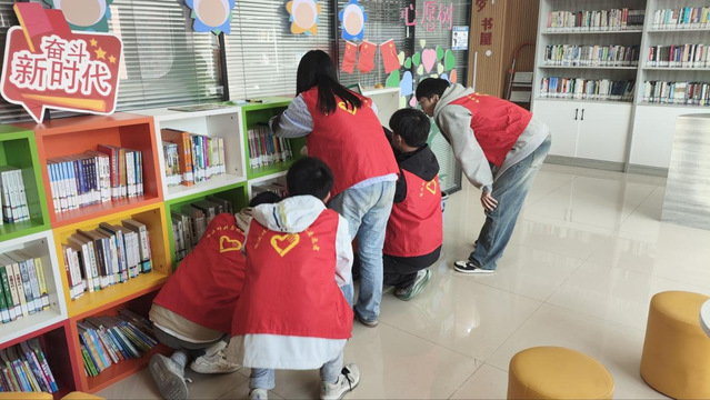 2024年11月6日下午兩點半,在朝霞居委會內,能源材料與化工學院學生會志愿團聯合學生第三黨支部組織的6名同學對朝霞居委會新購置的圖書進行了整理,為居委會提供了一個有序、整潔的閱讀環境。