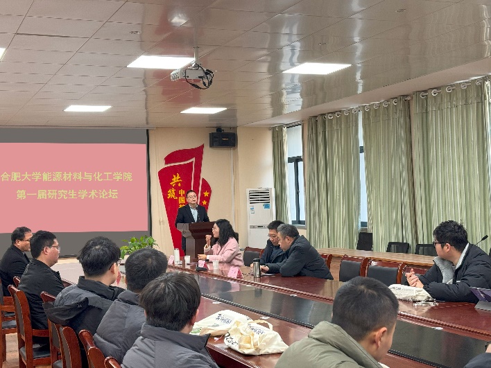 2024年12月28日,合肥大學能源材料與化工學院在學院學術交流中心成功舉辦2024年研究生學術論壇。本次研究生學術論壇由學院副院長鄧崇海教授主持,研究生處副處長高大明教授、學院黨委劉沛平書記先后致辭。學院紀委書記魏安樂、專業主任和部分研究生導師出席會議。