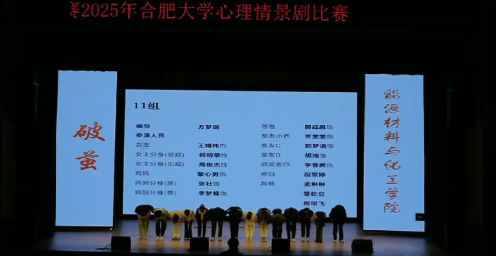 3月21日,我校校園心理情景劇比賽在熱烈的氛圍中圓滿落下帷幕。本次比賽吸引了來自各個(gè)學(xué)院的眾多優(yōu)秀劇目參賽,同學(xué)們用生動(dòng)的表演展現(xiàn)內(nèi)心世界,傳遞溫暖與力量,而能源材料與化工學(xué)院憑借作品《破繭》以93分的高分脫穎而出,斬獲一等獎(jiǎng)。
