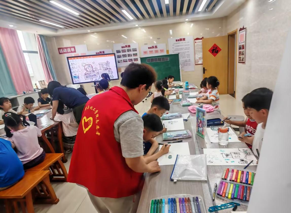 5月17日下午兩點半,在朝霞居委會內,來自合肥大學能源材料與化工學院的2名同學與朝霞居委會的美術老師一起教小朋友學習畫畫,激發了小朋友們對美術的熱情。