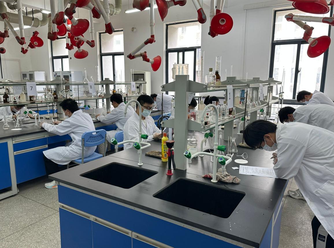 決賽為綜合實(shí)踐操作,實(shí)驗(yàn)環(huán)節(jié)從無(wú)機(jī)化學(xué)、分析化學(xué)、有機(jī)化學(xué)方面著重考察操作實(shí)驗(yàn)儀器、實(shí)驗(yàn)環(huán)節(jié)設(shè)計(jì)、實(shí)驗(yàn)數(shù)據(jù)記錄與處理等能力。比賽過(guò)程中,參賽選手們獨(dú)立思考,沉著冷靜,認(rèn)真進(jìn)行實(shí)驗(yàn)操作,展現(xiàn)了積極向上的良好風(fēng)貌,評(píng)委老師在一旁認(rèn)真觀察選手們的操作,保障實(shí)驗(yàn)的安全性與正確性。大家按照實(shí)驗(yàn)步驟有條不紊地進(jìn)行著,稱重、溶解、攪拌、定容,每一步都彰顯著選手們的實(shí)驗(yàn)操作功底與實(shí)驗(yàn)環(huán)節(jié)的熟悉,舉手投足間展現(xiàn)著他們的細(xì)致入微與嚴(yán)謹(jǐn)認(rèn)真。