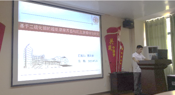 應胡坤宏教授邀請,我校2016屆碩士畢業生、現為鹽城工學院教師曹興安博士于7月21日至7月22日來我院開展了學術交流活動。曹興安博士結合自身讀博和工作期間的科研經歷,就項目的選題及研究生培養等方面與我院部分教師進行了深入交流,并在我院學術交流中心為研究生代表做了題為《基于二硫化鉬的超低摩擦界面構筑及摩擦特性研究》的學術報告。報告結束后,曹興安博士與研究生們進行了深入交流,毫無保留地分享自己的心得體會,鼓勵大家繼續讀博深造,將一切落實在行動上。