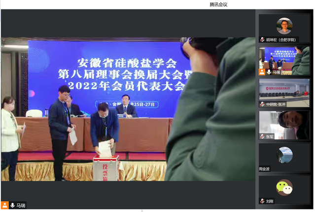 11月25-27日,安徽省硅酸鹽學會第八屆理事會換屆大會暨2022年會員代表大會在合肥市以線上線下相結合的方式舉行。我院無機非金屬材料工程專業教師積極參會,與省內各高校、企業專家深入交流。并參與第八屆理事會理事長、常務理事以及理事和監事的投票選舉工作。