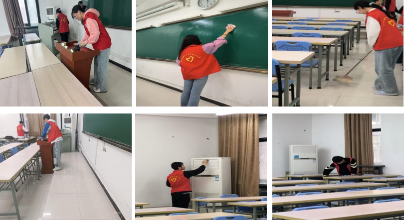 活動于每日17:50正式開始,志愿者們分組進入各個教室進行打掃,并由我院學生會志愿團成員組織在對應教室簽到簽退。在教室室大掃除中,志愿者們不怕苦,不怕累,不怕臟,認真做好清掃地面、擦拭桌椅、整理教具、清潔空調、整理衛生死角等每個細節工作確保教室內外環境的干凈整潔。在一番熱火朝天的努力下,打掃活動拉下了帷幕,志愿者們將教室打掃得窗明幾凈。