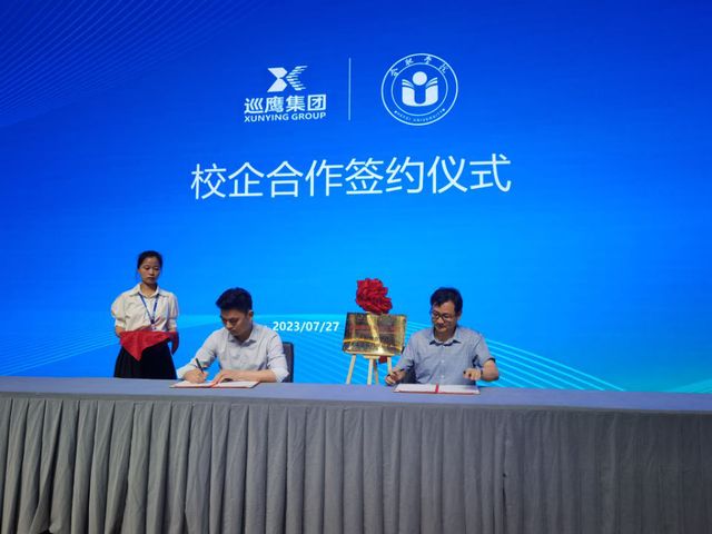會后,胡坤宏院長與褚兵董事長現場簽署合作協議,并為雙方共建的“產教融合基地、大學生實習就業基地”現場揭牌。(撰稿  胡恩柱  審核  梁鑫    簽發  魏安樂)