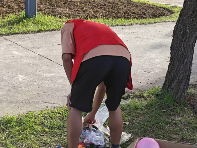下午5點,我院“三葉草”志愿服務隊的志愿者們身著統一的紅色馬甲,分成幾個小組對湖邊的垃圾進行分類收集。他們有的彎腰拾起廢棄的塑料瓶,有的伸手撈起漂浮的塑料袋,每一個動作都顯得格外認真和細致。隨著時間的推移,裝滿垃圾的袋子被整齊地排列在湖邊,見證了志愿者們的努力和成果。