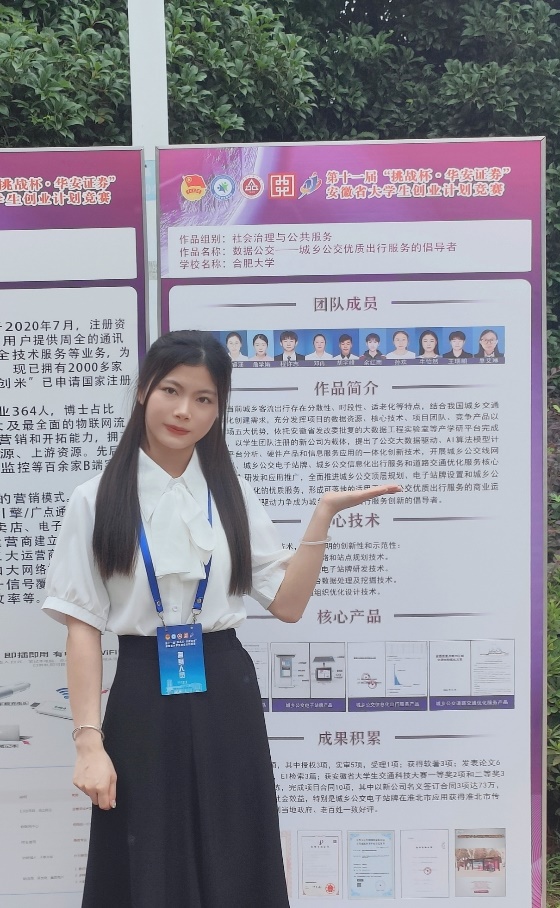創(chuàng)新無止境,每一次創(chuàng)新都是一次挑戰(zhàn)和機遇。研究生在讀期間,李雨琪作為主要完成人參加第八屆安徽省“互聯(lián)網(wǎng)+”創(chuàng)新創(chuàng)業(yè)大賽并榮獲金獎,第十屆“挑戰(zhàn)杯”安徽省大學生課外學術(shù)科技作品競賽并榮獲二等獎,作為團隊負責人以《數(shù)據(jù)公交--城鄉(xiāng)公交優(yōu)質(zhì)出行服務(wù)的倡導者》為題參加第十一屆“挑戰(zhàn)杯”安徽省大學生創(chuàng)業(yè)計劃競賽并榮獲銀獎。隨后,她憑借競賽優(yōu)異表現(xiàn)被校團委推薦參加第十四屆“創(chuàng)青春”安徽青年創(chuàng)新創(chuàng)業(yè)大賽并榮獲省級銅獎,同時被校團委重點報道。最后她又帶領(lǐng)團隊成員參加2024年安徽省大學生創(chuàng)新大賽,期間每天往返于實驗室和校創(chuàng)新創(chuàng)業(yè)大樓之間,最終完成了300多頁的比賽計劃書和37頁的PPT,獲得了省級金獎,并以學校第一排名晉級國賽。研二期間,她將一半的時間投入到學科競賽中,這不僅為她贏得了諸多榮譽,更重要的是全面提升了她的個人綜合能力,彰顯了新時代青年的奮斗與擔當。