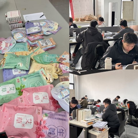 支部為學院每位考研學子準備了筆和暖寶寶。兩支筆寓意考試中筆筆生花,書寫屬于自己的輝煌答卷;暖寶寶代表了支部在冬日里的送給他們的溫暖祝福。學生們紛紛在橫幅上留下鼓勵自己的話。支部還走進考研自習室,為部分還在奮戰學習的學長們送上祝福和禮物,鼓勵他們保持積極心態,全力以赴迎接考試。