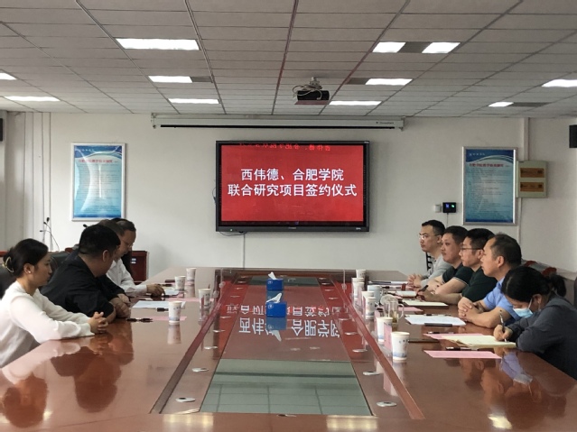 會上,校企雙方負責人就項目基本情況和未來合作方向進行了廣泛交流,達成了重要共識。華建兵院長表示,合肥學院高度重視與西偉德公司的合作,希望以此次項目合作為契機,不斷深化校企合作,期待雙方在人才培養、實驗室建設、新產品開發等方面協同共進、互利共贏。Klaus Bourquin總經理表示,西偉德公司與合肥學院前期有著良好的合作基礎,希望雙方在軌道交通、被動房等領域能夠進一步加強合作,實現共贏。肖新國副主任向合肥學院與西偉德公司簽署合作協議表示祝賀與支持,他希望合作雙方在人才培養、技術轉化等方面全面深化合作力度,實現資源共享,優勢互補。儀式上,石軍兵博士和賈曉輝經理分別代表雙方簽署了合作協議。(城市建設與交通學院 撰稿人:石軍兵 審稿人:祝磊)