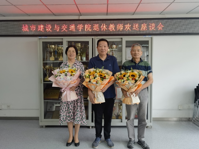 座談會的最后,學院領導為三位教師贈送了鮮花,張永軍代表學院全體教師對老教師們一直以來的辛勤工作和付出表示衷心感謝,希望他們退而不休,一如既往地關注和支持學院發展,同時也祝福老教師退休生活多姿多彩,幸福美滿。(城市建設與交通學院 撰稿人:王艷麗 審稿人:張永軍)