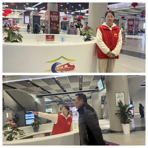 22級綠色建筑材料研究生李天莉假期參加了火車頭志愿服務隊組織的火車站志愿服務活動。適逢春節返工及學生返學熱潮,她為有需要的旅客查詢路線、引領他們找到準確的公交及地鐵乘車口、幫助其在換乘空隙時間找到合適的休息區。