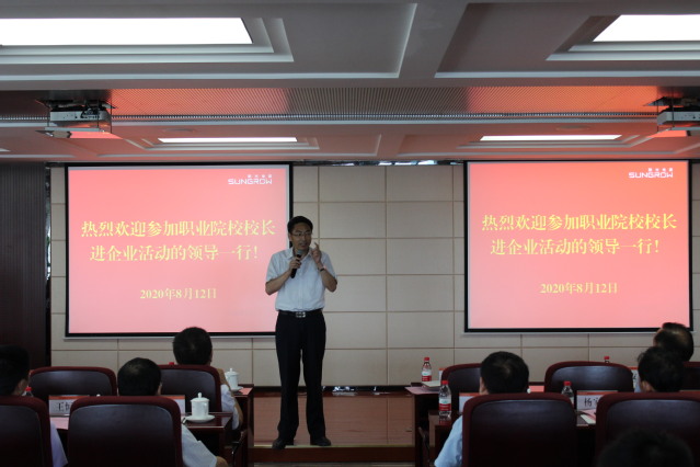 2020年8月12日上午,首屆合肥市職業院校校長進企業活動啟動儀式在陽光電源股份有限公司順利舉行。合肥學院黨委委員、副校長盧平,市教育局黨委書記、局長王杰才等領導,以及合肥市現代職業教育集團內的30多位職業院校校長、副校長參加了啟動儀式。儀式由市教育局二級調研員唐文水主持。