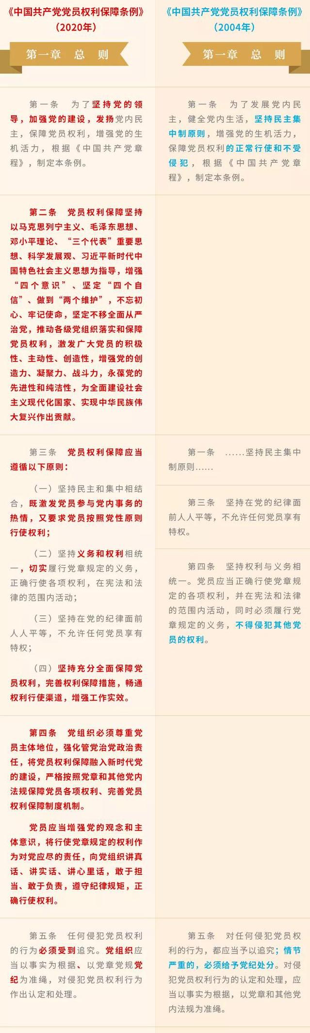 《中國共產黨黨員權利保障條例》修訂前后對照表
