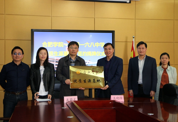 4月11日,合肥學(xué)院優(yōu)質(zhì)生源基地授牌儀式在合肥一六八中學(xué)舉行。受學(xué)校委派,教務(wù)處處長王曉峰、發(fā)展規(guī)劃處處長繆群道出席授牌儀式。王曉峰和合肥一六八中學(xué)副校長吳菊文分別代表雙方簽署了優(yōu)質(zhì)生源基地共建協(xié)議。繆群道代表學(xué)校為優(yōu)質(zhì)生源基地學(xué)校授牌。
