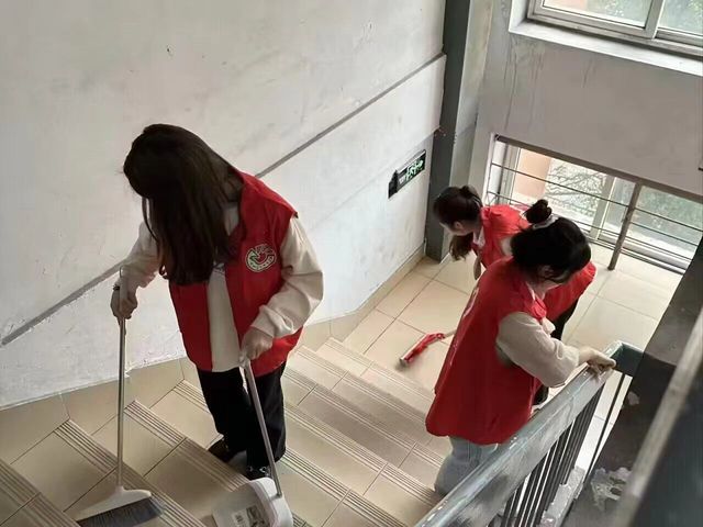 4月17日上午十點,在合肥大學香怡社區十二棟進行了一場別開生面的寢室樓衛生打掃活動。此次活動旨在弘揚“我為同學做實事”的精神,讓同學們共同參與到寢室樓的衛生維護中來,共同營造一個整潔、舒適的學習生活環境。