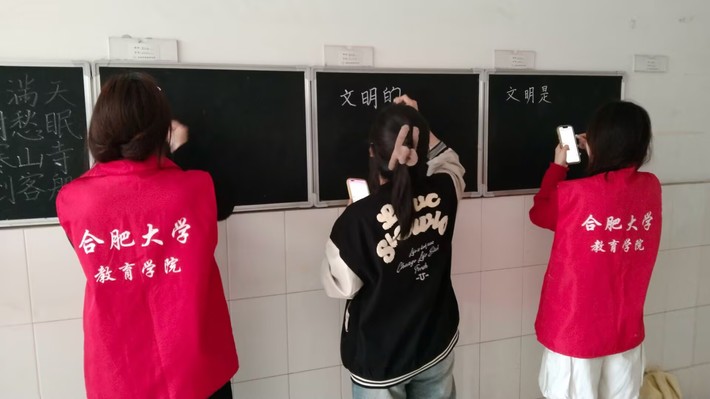 合肥大學(xué)教育學(xué)院于2025年4月22日成功舉辦了“春風(fēng)送暖文明月,板書新跡顯真章”主題共建文明校園活動,此次活動由教育學(xué)院社會實踐與志愿服務(wù)中心主辦,旨在通過修復(fù)學(xué)院一期三棟三樓走廊及側(cè)道的85塊板書,打造全新的校園文化展示空間,推進(jìn)文明校園建設(shè)。