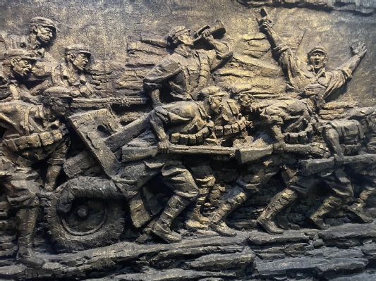 天若有情天亦老,人間正道是滄桑。安定和平的年代,是英烈們用生命壘造出來(lái)的。帶著對(duì)革命烈士崇高的敬意,志愿者們走進(jìn)館內(nèi),詳細(xì)去了解這場(chǎng)戰(zhàn)役的歷史。進(jìn)入場(chǎng)館后,一幅巨大的浮雕映入眼簾,浮雕上雕刻的是百萬(wàn)雄師過(guò)大江的壯闊景象。跟著講解員的指引,志愿者們認(rèn)真的參觀各個(gè)場(chǎng)館。館中內(nèi)容包括革命文物、圖片、文字等等,展現(xiàn)了渡江戰(zhàn)役的歷史經(jīng)過(guò)以及影響和推動(dòng)歷史發(fā)展的重要人物,詳細(xì)介紹了解放軍戰(zhàn)士英勇抗戰(zhàn)的革命斗爭(zhēng)史。陳舊的手槍、還原的木質(zhì)帆船,置身于逼真的場(chǎng)景中,參觀者仿佛聽(tīng)見(jiàn)了戰(zhàn)士們的吶喊聲、劃船聲,看見(jiàn)戰(zhàn)士們手持槍支站在船頭,浴血奮戰(zhàn)的場(chǎng)景。