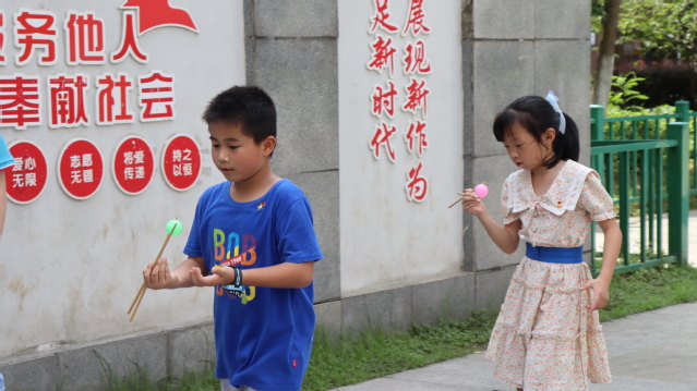 比賽進入尾聲,最后一個環(huán)節(jié)也同樣精彩——用筷子夾乒乓球。逆水行舟用力撐,一篙松勁退千尋,通過孩子們不斷地嘗試和挑戰(zhàn),有的孩子抓耳撓腮,百試不得其中門道,有的孩子胸有成竹。孩子們在游戲中培養(yǎng)了他們的手、眼、腦、心的四者的協(xié)調(diào)結(jié)合以及持之以恒的團結(jié)協(xié)作精神。微風(fēng)吹走孩子們的汗意,卻吹不散孩子們童年的喜悅,風(fēng)將永遠伴隨著孩子們的歲月,由東到西,無拘無束。