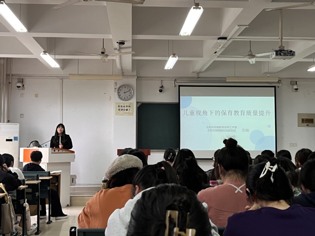 為了全面提升幼兒園保育教育實施質量,提升教師對課程組織與實施的能力。10月10日下午兩點,在301教室展開了面向教育學院學前教育專業(yè)學生的講座。講座由學前教育系系主任車雪蓮老師主持,合肥市西園新村幼教集團的宗珣園長主講,講座主題為《兒童視角下的保育教育質量提升》,講座現場座無虛席,學前教育系的教師們也積極參會聆聽。