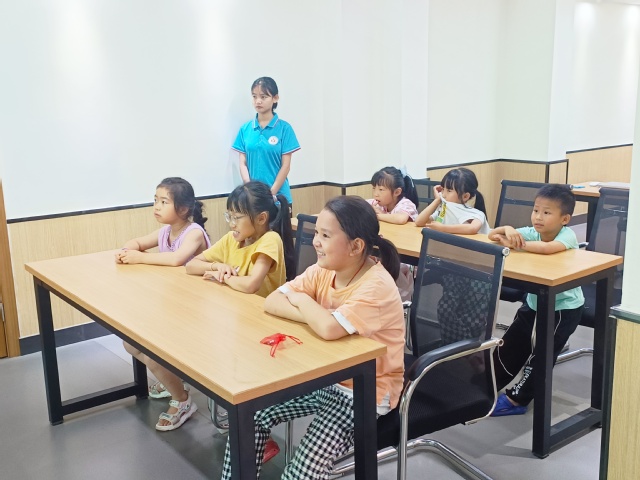 前行是在每一次的努力下進步。孩子們短暫地感受了小游戲正話反說的挑戰后,又迎來了一首歡樂的歌曲《天天向上》,“我們天天向上散發著光,天天向上乘風破浪,一起溫暖歡笑飛揚?!卑殡S著音樂的律動,孩子們認真學習志愿者的動作,舞動自己的小小雙手,努力做好每一個動作,盡管在休息時間也未曾停下練習。對比初次嘗試時動作不連貫或卡不上點的情況,在隨后的風采展示中,孩子們動作流暢,在音樂中綻放著自己自信的笑容。手勢舞能通過肢體動作和舞蹈節奏傳遞思想和情感,給孩子們藝術和美的熏陶。孩子們用流暢自然的動作、整齊劃一的手勢,協調優美的身體語言,詮釋著音樂的美感,自信的面龐展示著青春的朝氣,洋溢著青春的色彩,大家盡情體驗手勢舞帶來的快樂,展現了積極向上、朝氣蓬勃的良好風貌。