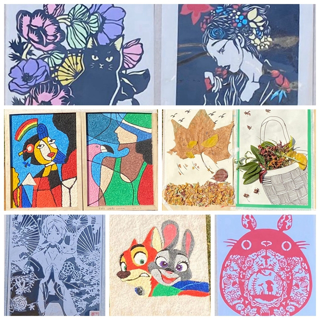 本次展覽作品由21級學(xué)前教育普本班學(xué)生完成,涉及剪紙刻紙、樹葉粘貼畫、紙漿畫等多種藝術(shù)表現(xiàn)形式,作品色彩鮮明、奇思妙想、稚趣盎然,體現(xiàn)了學(xué)生們對藝術(shù)的熱愛,凸顯了學(xué)前專業(yè)特色。展出期間,前來觀看的學(xué)生也絡(luò)繹不絕,他們在各式各樣的作品前或駐足欣賞,或細(xì)心品味,不時(shí)用手中的相機(jī)或手機(jī)拍攝,留下精彩畫面。