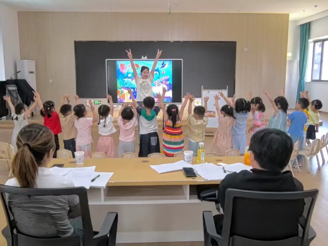 經(jīng)過《無生上課》課程中的出色表現(xiàn),12名學(xué)生被選拔出來,她們根據(jù)自己的專長精心準(zhǔn)備了各自的公開課程。此次活動(dòng)邀請了河北路幼兒園園長張雨涵、教育學(xué)院學(xué)前教育系車雪蓮、俞華以及幼兒園的骨干教師和實(shí)習(xí)教師共同參與聽評(píng)課。 課堂是交流的最佳場所,23級(jí)學(xué)前教育(專升本)的12名學(xué)生對這次難得的機(jī)會(huì)倍感珍惜,課前備課時(shí)認(rèn)真細(xì)致,準(zhǔn)備充分。第一次進(jìn)行有生上課的小“老師”們能夠精準(zhǔn)地把握幼兒的興趣,巧妙地利用多媒體、實(shí)物和教學(xué)輔助工具。她們以親切的教學(xué)態(tài)度和生動(dòng)形象的語言,營造了一個(gè)輕松愉快的學(xué)習(xí)氛圍。面對孩子們時(shí),她們表現(xiàn)得熱情而自然,互動(dòng)中既溫柔又充滿耐心,使孩子們在游戲中學(xué)習(xí),樂在其中。這樣的教學(xué)方式使教師和孩子們都獲得了豐富的體驗(yàn)和收獲。