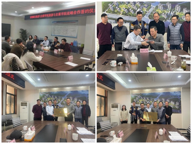 應安徽耀安投資集團有限公司邀請,20201225日,旅游與會展學院院長劉力教授一行赴銅陵市,與安徽耀安投資集團有限公司及其下屬安徽金鳳旅游投資有限公司舉行產學研項目立項簽約儀式。安徽耀安投資集團董事長、黨委書記、總經理姚應凌、副總經理唐新偉、集團下屬安徽金鳳旅游開發有限公司總經理徐煒對我院專家學者的到來表示了熱烈歡迎,我院教師代表王汝幸、茆長榮,張賀翔、姚靜靜參加了此次簽約儀式。