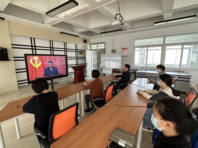10月23日上午,黨的二十屆一中全會舉行,新一屆中央政治局常委同中外記者見面,習近平總書記代表中國共產黨第二十屆中央委員會致辭。旅游與會展學院黨委書記黃雄英、副院長鄭嬗婷、黨委副書記孫靜宇同部分學生黨員一道,于四樓黨員活動室組織觀看了現場直播。