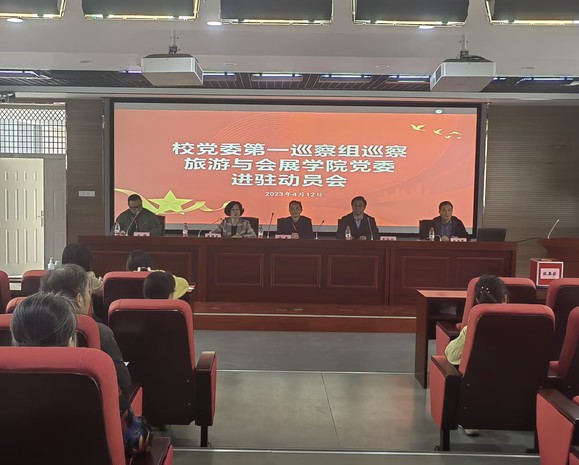 根據(jù)校黨委巡察工作統(tǒng)一部署,4月12日,校黨委第一巡察組巡察旅游與會展學(xué)院黨委進駐動員會在博學(xué)樓C座學(xué)術(shù)報告廳召開。巡察組組長余勇、校紀委副書記兼紀委辦公室主任羅會必、審計處副處長康輝、旅游與會展學(xué)院黨委書記黃雄英、院長宋玉軍及第一巡察組全體組員、旅游與會展學(xué)院黨政班子成員、師生代表出席會議。會議由旅游與會展學(xué)院黨委書記黃雄英主持。