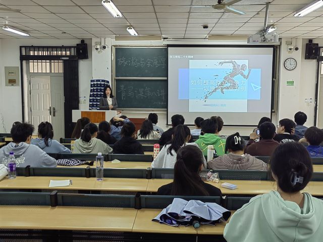 本次課程的主題是“如何提高就業競爭力——以旅游企業為例”。首先,高騰老師回顧二十大代表熱議話題之一“促進高質量充分就業”,引出就業競爭力的含義和“冰山理論”。接著,她通過科學的數據講解企業對旅游類本科畢業生知識和能力的要求以及企業對旅游類本科畢業生素質的要求,詳細介紹旅游管理專業就業競爭力,如服務管理能力、經營管理能力及策劃營銷能力等。最后,她介紹學校促進就業的舉措,如精英化培養、舉辦招聘會及訪企拓崗行動等。同時對如何提升就業競爭力提出建議,強調要定位準確、準備充分、心態良好。