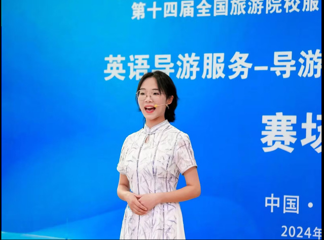 在學院領導的高度重視和支部系部精心組織下,孟祥紅、陳蘋蘋、吳慧、俞曉靜四名指導老師深入研究大賽規則,精心錘煉導游詞講解技巧,指導學生掌握專題講解的知識點。他們對細節的精益求精,以及對學生的悉心指導,為選手們在賽場上的出色表現奠定了堅實的基礎。選手們在老師的指導下,全身心投入到備賽中,不斷磨練自己的專業技能。在賽場上,他們以青春的活力和專業的素養,向評委和觀眾展示了旅游學子的風采,贏得了在場人士的一致好評。經過激烈角逐,最終我校四位選手王雙一獲得英語組一等獎,張源獲得英語組三等獎,管蓉、張文明獲得中文組三等獎。