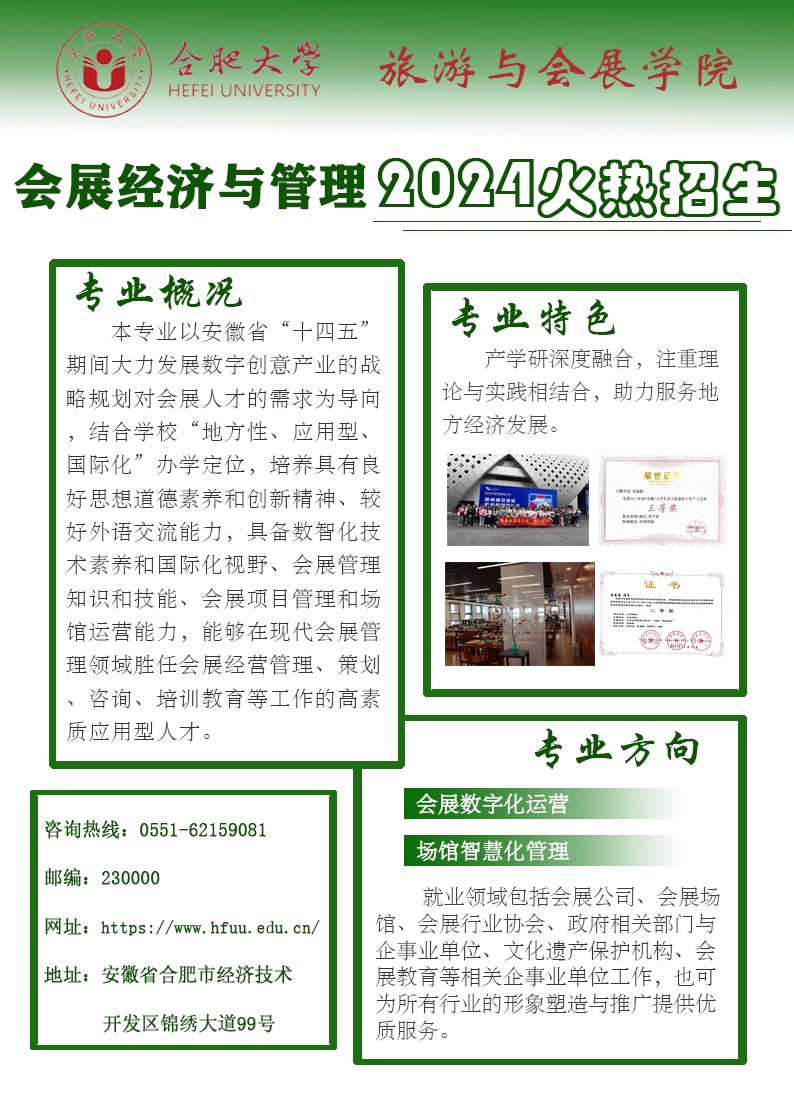 會展經濟與管理(本科)     咨詢電話:0551-62159081     招生海報:會展經濟與管理專業.jpg