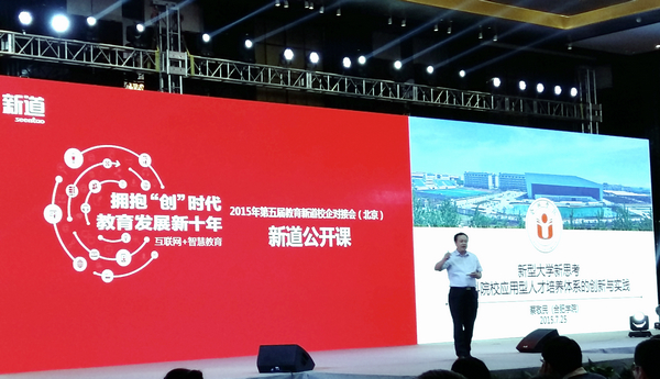 7月2526日,由中國(guó)高等教育學(xué)會(huì)和新道科技股份有限公司聯(lián)合主辦的2015年第五屆教育新道校企對(duì)接會(huì)在京舉行。本次對(duì)接會(huì)的主題為“擁抱創(chuàng)時(shí)代,教育發(fā)展新十年——互聯(lián)網(wǎng)+智慧教育。大會(huì)主要圍繞“互聯(lián)網(wǎng)+”的創(chuàng)新智慧教育教學(xué)新模式、“創(chuàng)新創(chuàng)業(yè)人才培養(yǎng)試驗(yàn)區(qū)”的教學(xué)實(shí)踐等主題展開(kāi)研討。教育部高等教育司司長(zhǎng)張大良,國(guó)家教育咨詢委員會(huì)委員、用友集團(tuán)董事長(zhǎng)兼CEO王文京,北京林業(yè)大學(xué)校長(zhǎng)宋維明,上海財(cái)經(jīng)大學(xué)校長(zhǎng)樊麗明以及合肥學(xué)院等300多所全國(guó)高校的領(lǐng)導(dǎo)、專家參加了對(duì)接會(huì)。我校黨委書記蔡敬民、副校長(zhǎng)劉建中率團(tuán)參加了對(duì)接會(huì)。