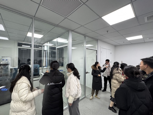隨后,陳玲帶領(lǐng)合肥師范學(xué)院師生前往53棟生物增材制造中心。由劉婧老師介紹了智能生物材料、3D打印、細(xì)胞培養(yǎng)、藥物合成等實(shí)驗(yàn)室,帶領(lǐng)大家參觀學(xué)習(xí),感受前沿科研成果與創(chuàng)新氛圍。