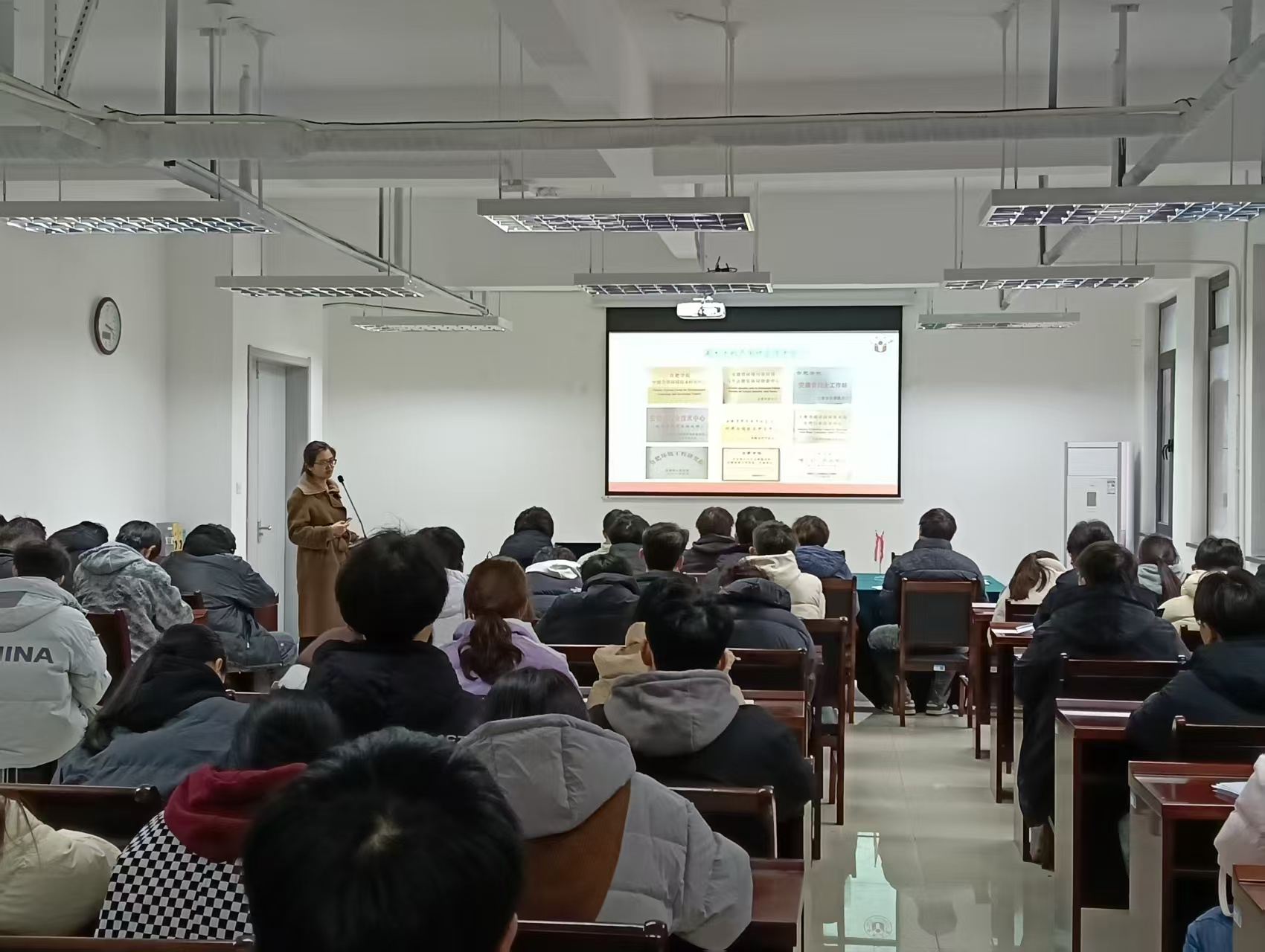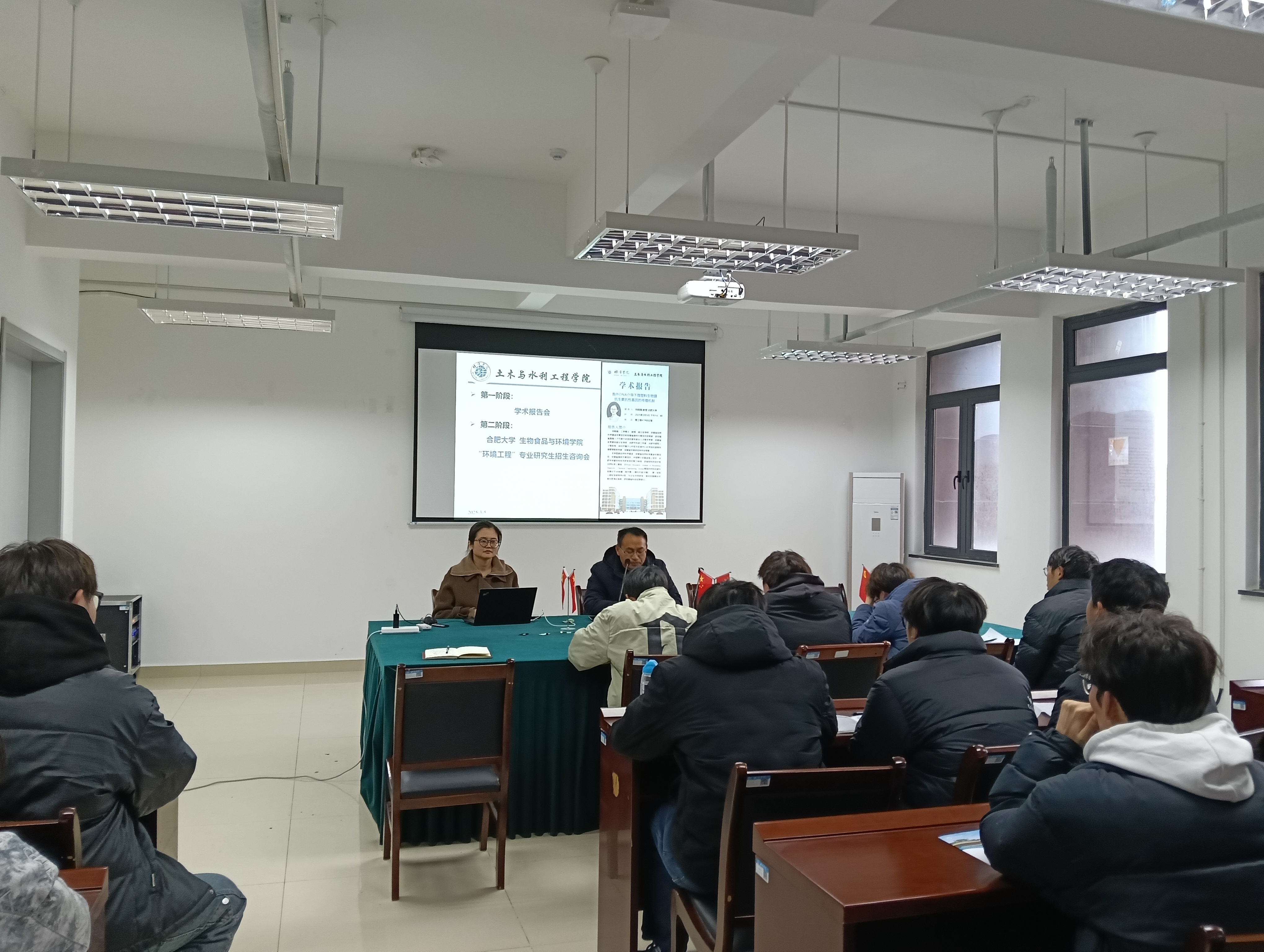 蚌埠學院食品與生物化工學院楊俊老師、土木與水利學院副院長朱蘭保和水利工程系黨支部書記潘爭偉接待并精心安排宣講場所與參會學生宣講對象主要為相關專業的大三大四學生。在宣講過程中,環境與資源碩士點負責人劉曉薇從專業特色、科研項目及國際合作等方面進行了介紹,強調該專業在環境污染治理、資源循環利用及生態修復等前沿領域的研究優勢。食品營養與健康碩士點負責人肖青青詳細介紹了該專業的培養目標、課程設置、研究方向招生計劃、科研項目成果及就業前景,指出該專業緊密結合國家“健康中國”戰略需求,致力于培養復合型人才。此外,宣講團隊還詳細解讀了生物與醫藥和生物工程兩個專業的招生計劃、研究方向及培養模式,強調產學研結合和創新能力培養。