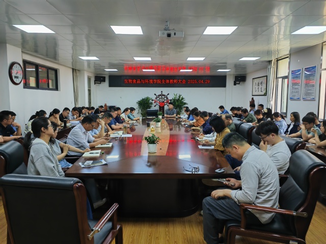 為深入貫徹中央八項規定精神學習教育,進一步加強作風建設,凝聚全院教職工力量,統籌推進近期重點工作,2025年4月29日,生物食品與環境學院召開全體教師大會。會議由學院黨委書記李秀娟主持,學院黨政領導班子成員及全體教師參會。