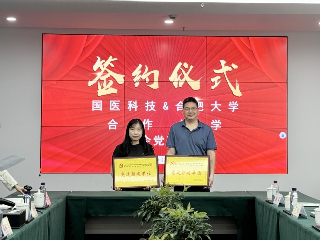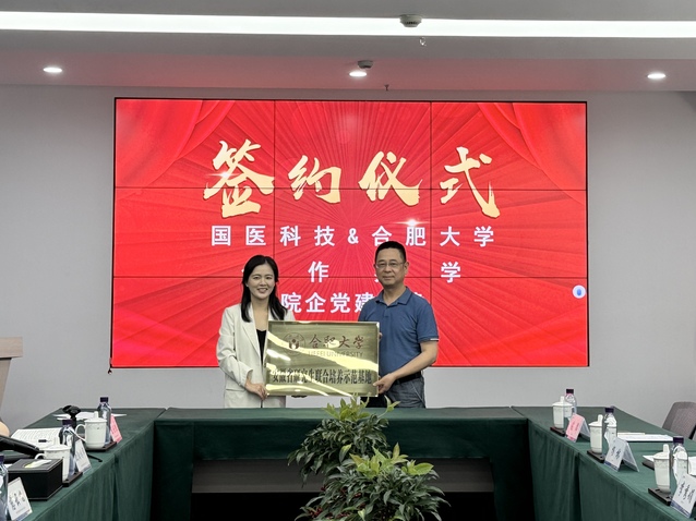 會上,雙方進(jìn)行了“院企黨建聯(lián)建單位”“國醫(yī)啟航班合作辦學(xué)”簽約儀式、“安徽省研究生培養(yǎng)基地”、“黨建聯(lián)建單位”授牌儀式,并對未來的發(fā)展進(jìn)行交流溝通。