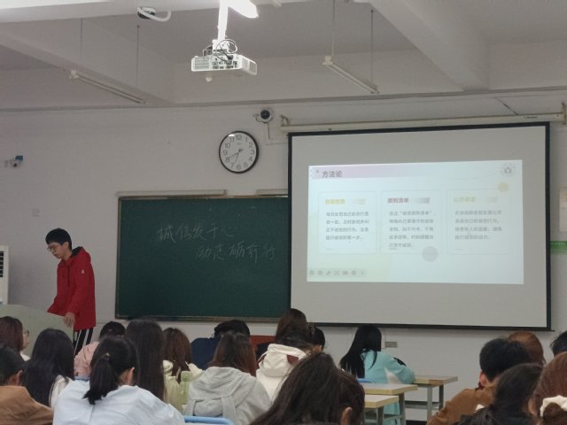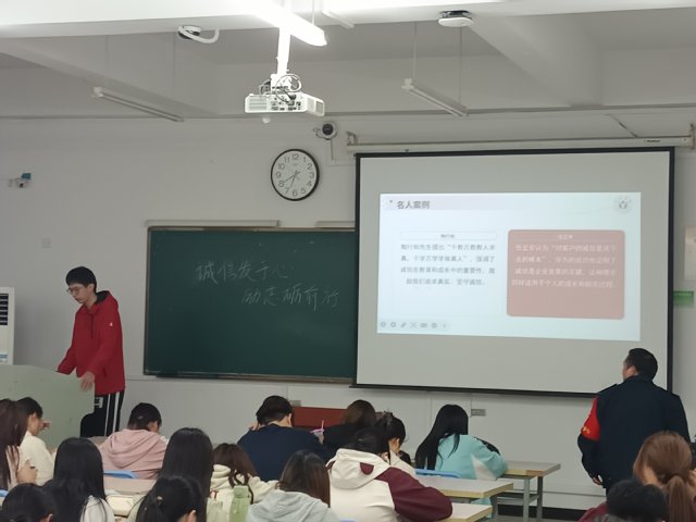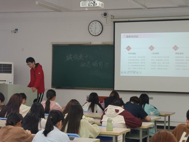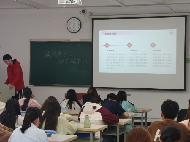 活動期間,學院創新構建“三維教育”模式:在理論認知層面,開展“誠信思辨課堂”,通過解析海爾集團“砸冰箱”事件、斯坦福大學榮譽守則等經典案例,結合學術不端、論文抄襲等反面教材,組織學生開展小組辯論與情景模擬;在情感共鳴層面,邀請國家勵志獎學金獲得者講述“誠信還貸守護信用資產”的真實經歷,以“守信者行穩致遠”的切身感悟強化示范效應;在實踐養成層面,聯合校青年志愿者聯合會開展“誠信志愿行”活動,組織學生參與社區環境治理、老年群體關愛等服務,將誠信理念轉化為民生實事。