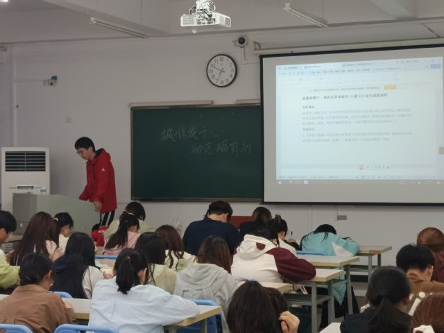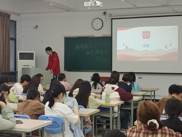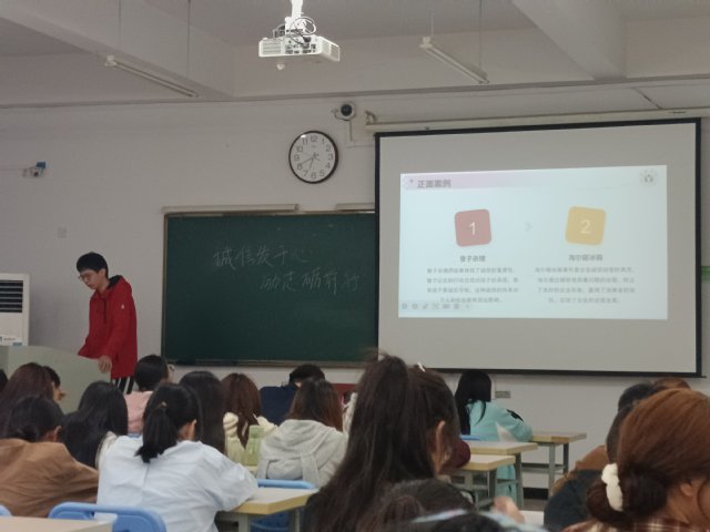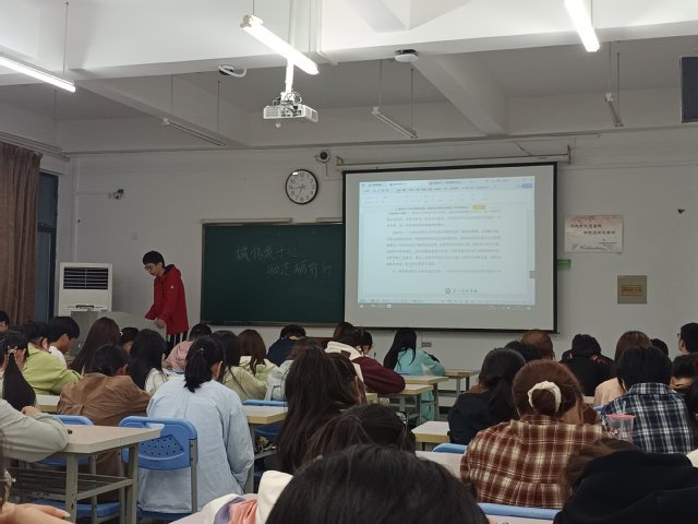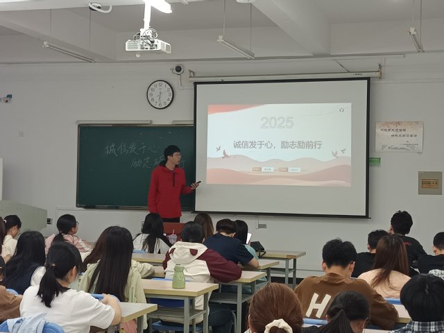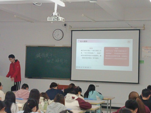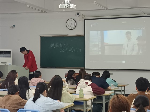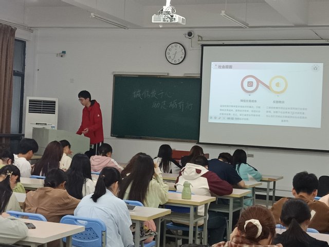 523日,活動啟動儀式在生化樓209教室舉行。23生物工程2班滕偉豪同學發表了“誠信:立身之本與成才之基”的主題演講,演講結合個人成長經歷,深刻闡釋誠信在學業發展、職業規劃及社會交往中的核心價值,號召青年學子以誠修身、以信立世。活動現場同步發布微視頻《算賬》,通過“經濟賬”與“人生賬”的雙重視角,引發學生對誠信價值的深度思考。